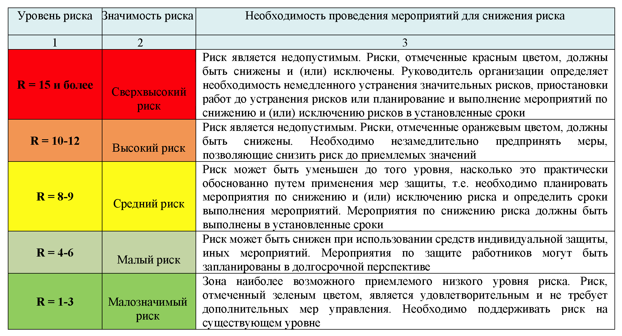 Таблица сравнения рисков и последствий